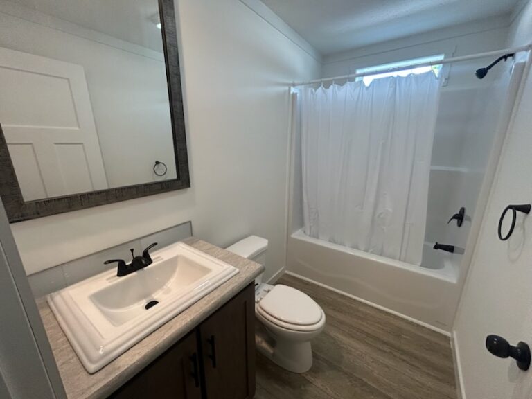 - Bathrooms: The home features two full bathrooms tailored for comfort and style. One is equipped with a soaking bathtub for ultimate relaxation, while the other includes a step–in shower for easy access and modern functionality.